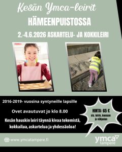 Leiri järjestetään 2.6.-4.6.2026 YMCA Tampereen tiloissa, Hämeenpuisto 14 F, 33210 Tampere