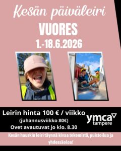 Leiri järjestetään arkipäivisin 1.-18.6.2026 Vuoreksen koululla, osoitteessa Rautiolanrinne 2, 33870 Tampere.